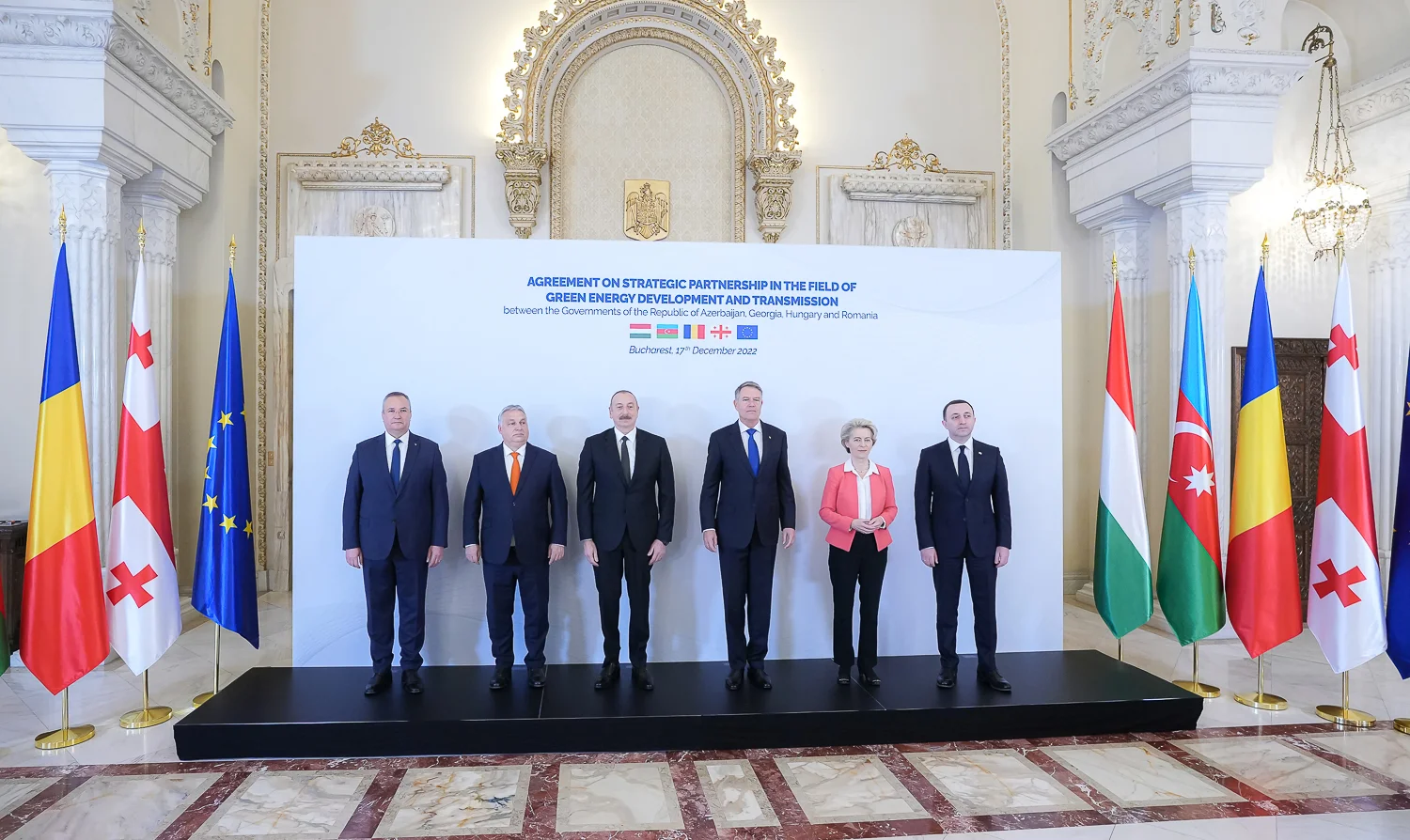 În prezența președintelui României Klaus Iohannis și al președintelui Comisiei Europene Ursula von der Leyen, președintele Republicii Azerbaidjan Ilham Aliyev, prim – ministrul României Nicolae Ciucă, prim – ministrul Ungariei Viktor Orban și prim – ministrul Georgiei Irakli Garibashvili au semnat pentru operaționalizarea ”coridorului verde”, care demonstrează că prin cooperare regională vom reuși să diversificăm sursele de aprovizionare cu energie.