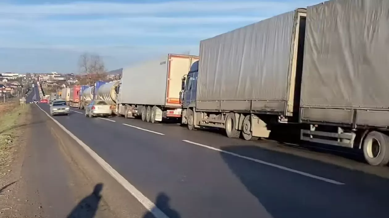 Coloana de camioane care aşteaptă să iasă din ţară pe la Vama Siret se întinde pe 25 de kilometri, anunţă, luni dimineţa, autorităţile din Suceava. Poliţia de Frontieră precizează că timpul estimat de aşteptare pentru ieşirea din ţară este de 900 de minute.