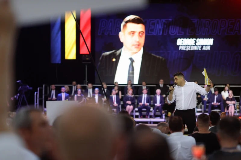 Momentul de maximă intensitate, însoțit de spectacol de fum și urale, a fost, evident, apariția președintelui AUR, George Simion. „Vom lupta pentru România noastră și pentru Europa noastră”; „Suntem locul 1 în mintea și în sufletul românilor”. Apoi s-a întâmplat un lucru straniu, Simion a vorbit despre vizita lui Viktor Orban în România, „huooo” au răspuns activiștii de partid, dar nu și fanii AUR, care l-ar pupa dacă l-ar vedea. Mai departe zice Simion: „S-au spus unele adevăruri acolo. E corect, ce-i corect e corect, valorile Europei noastre nu sunt infracționalitatea, nu sunt migrația ilegală, nu sunt războaiele. Astea toate sunt adevăruri, dar nu s-a spus adevărul până la capăt. Am 36 de ani, m-am născut în 1986 și vreau să le spun celor care visează schimbări de granițe că în Europa noi nu facem iredentism, șovinism și schimbări de granițe. Să încerce la Putin, poate, și în Rusia.”… [continuare]